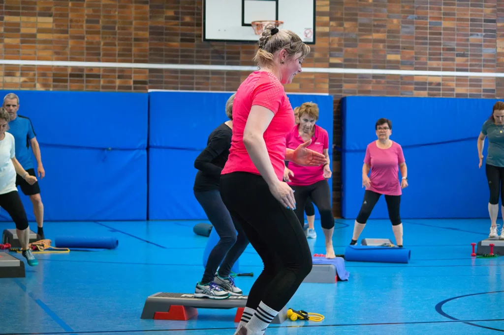 In unserer Aerogym-Gruppe erwartet dich ein abwechslungsreiches Ganzkörpertraining, das Gymnastik mit Ausdauer kombiniert – und das mit verschiedenen Handgeräten wie Bällen, Hanteln, Bändern oder Reifen.