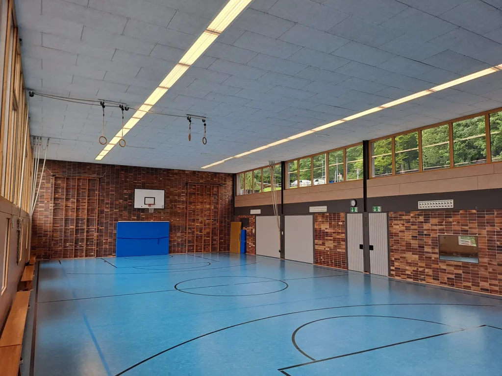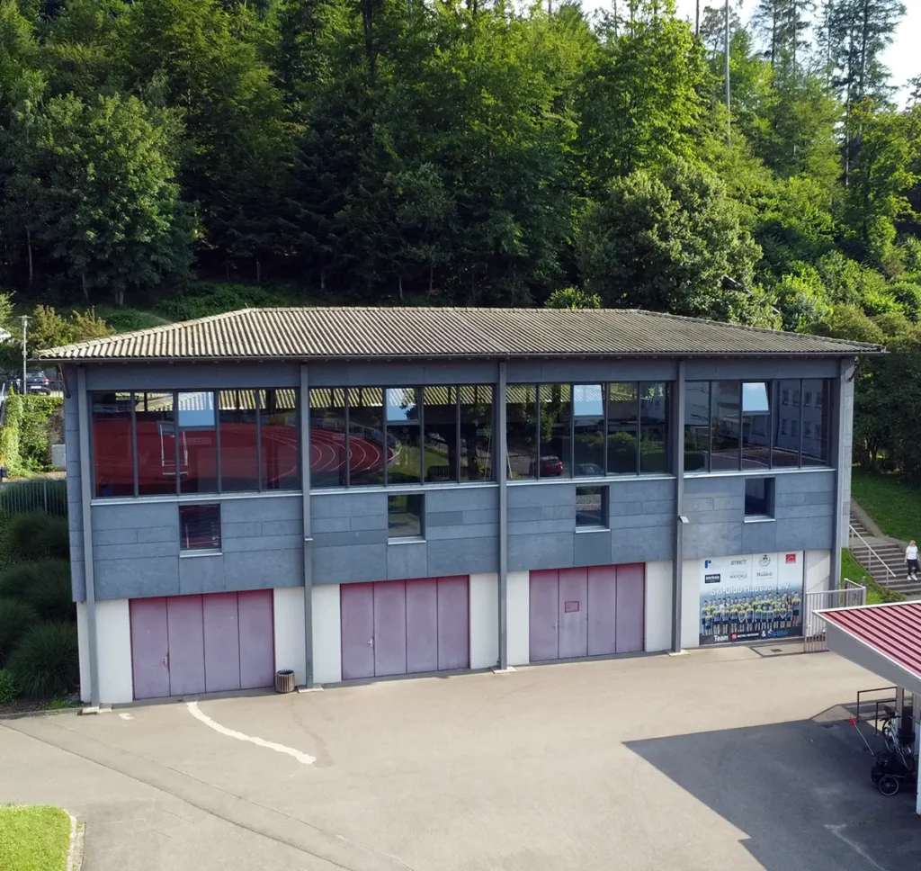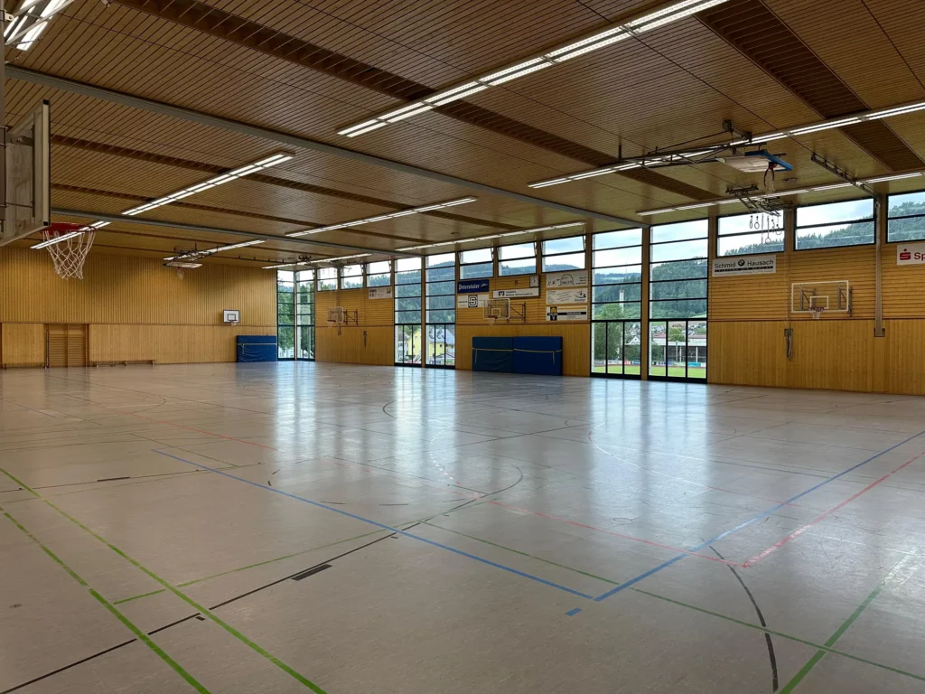 Die Tannenwaldhalle ist das Zentrum vieler sportlicher Aktivitäten – modern, hell und direkt am Sportplatz gelegen. Sie lässt sich in drei Bereiche unterteilen, ideal für paralleles Training.